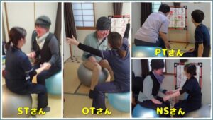 排痰促進のために、背中、胸のタッピングや畳の上でゴロゴロと体位変換させたりしますが、もっと楽しく効率的・効果的にできるのはないかを介入スタッフさんに相談しました。