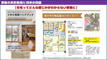 私はお話の中でご紹介いただいたCMCハンドブックの研究メンバーで、調査では18歳未満の比較的体格が小さい医療的ケア児のいるご家庭を訪問しましたが、今回のお話で、患者様の体の成長に伴って生じる住環境の課題やヒヤリハットも少なからずあるのではないかと気になりました。またお話をお伺いする機会を楽しみにしております。