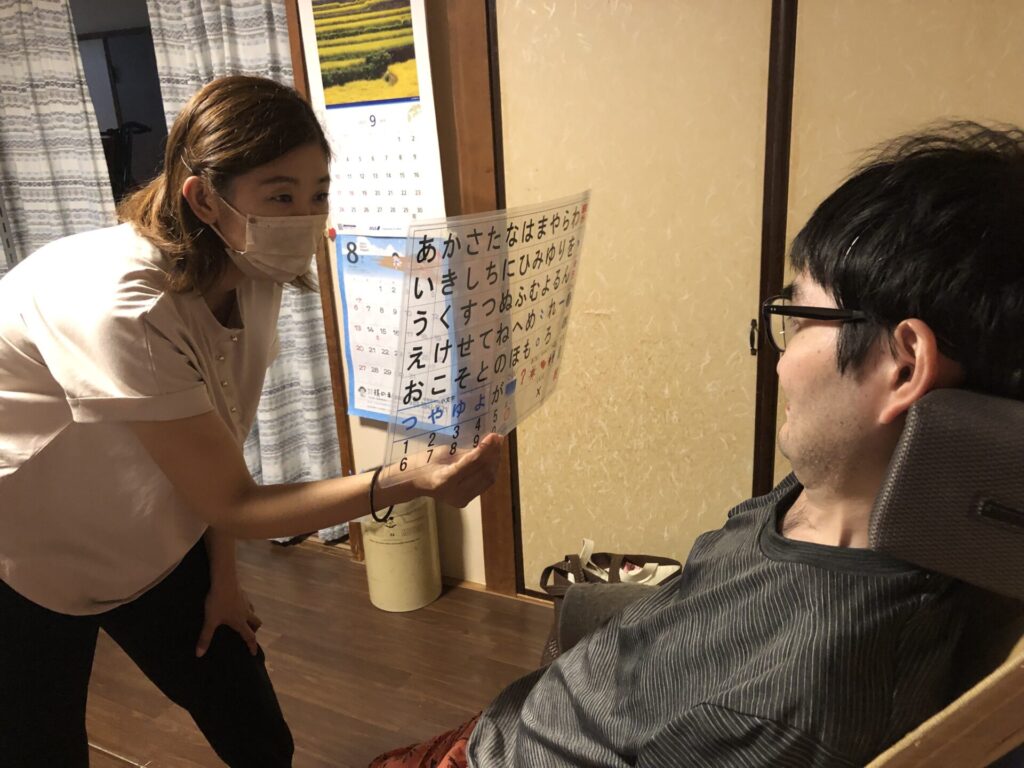 私は近くにいたヘルパーさんに文字盤をやってもらおうと思い、気づいてもらうために「ハァ~」と息を出した。すると口から何やら音が出た。いや音ではない、声だ。「ハァ~」って息を出したのに、「ア~」という声が出たのだ。ええええっ! こりゃ一大事だ!